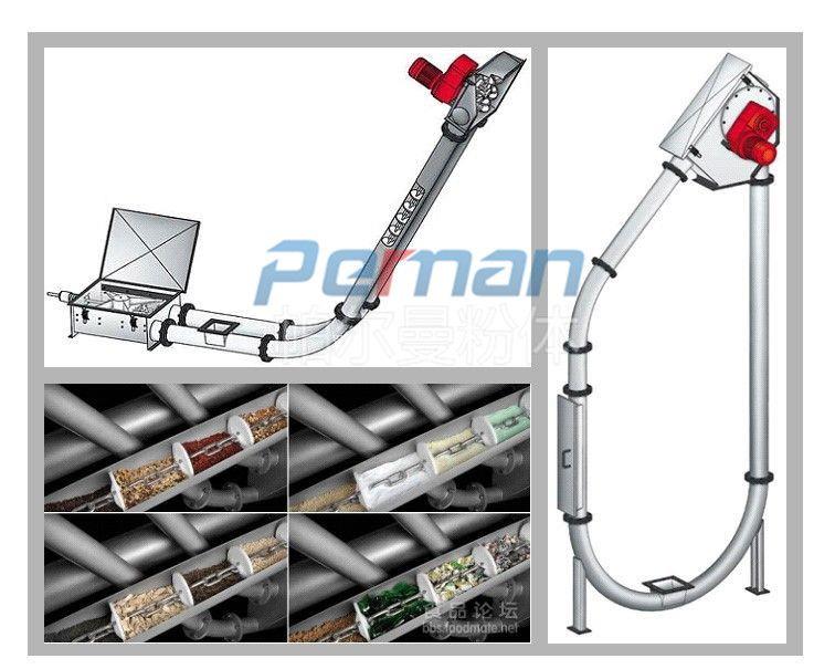 在輸送物料的過程中物料能夠在設(shè)備密封的管道中,物料是通過設(shè)備中的鏈片的傳動工作進(jìn)行移送的,移送的方向是沿轉(zhuǎn)彎管道進(jìn)行的傾斜、水平或垂直。